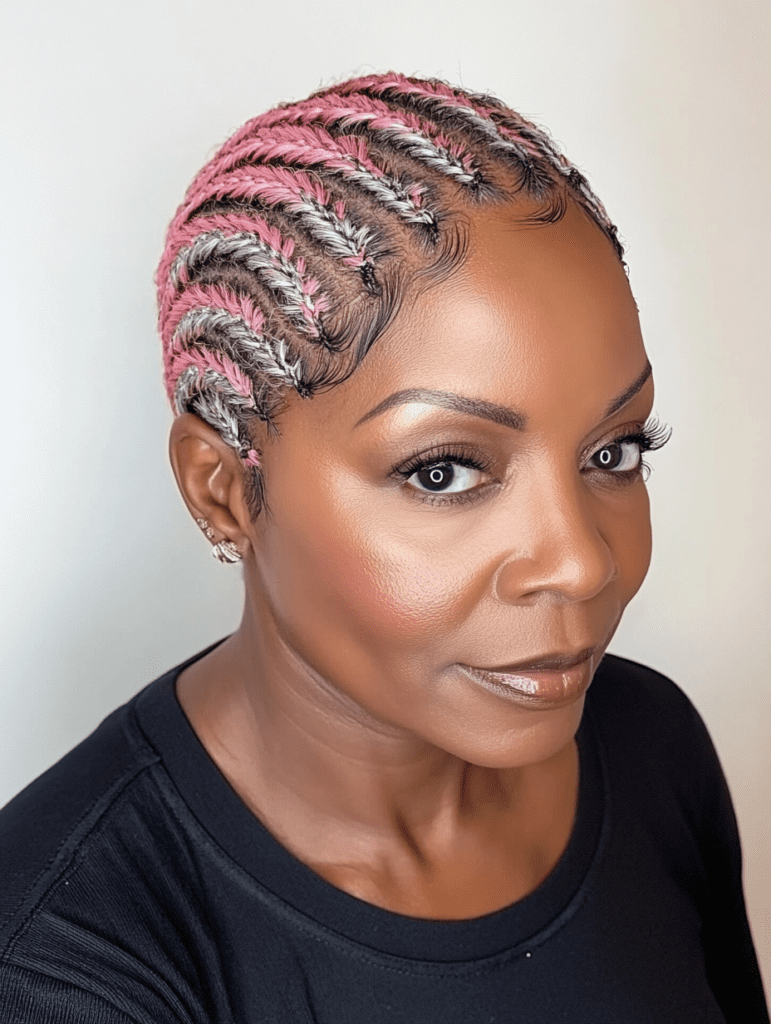 15. Zig-Zag Cornrows in in Shades of pink and Gray